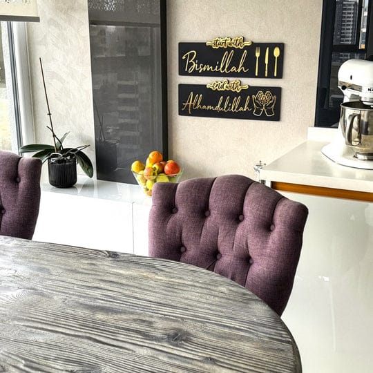 Start with Bismillah End with Alhamdulillah acrylic wooden Islamic wall art features a beautiful design and serves as a constant reminder to begin and end every task with the name of Allah. Made with high-quality acrylic and wood, this piece adds a touch of Islamic decor to any space.